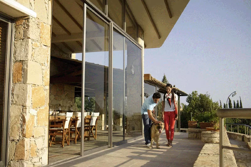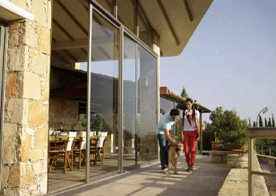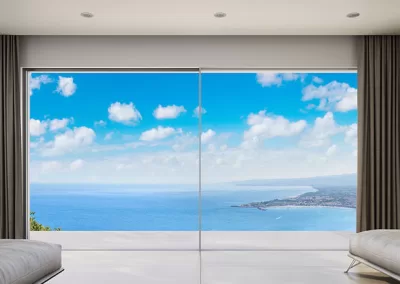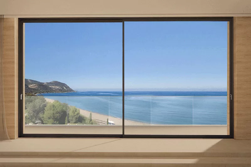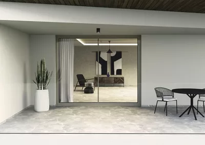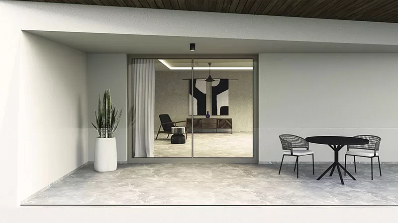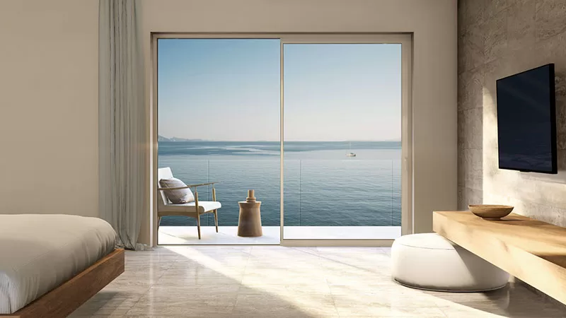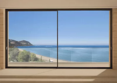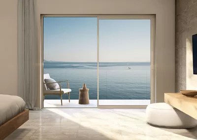 Σύγχρονα συρόμενα κουφώματα αλουμινίου που προσφέρουν άνεση, μεγάλες γυάλινες επιφάνειες και μέγιστη εκμετάλλευση φυσικού φωτισμού.